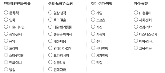 아래는 네이버 블로그의 주제 카테고리인데요.