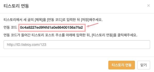티스토리와 연동되었다는 팝업창이 뜰 겁니다.
