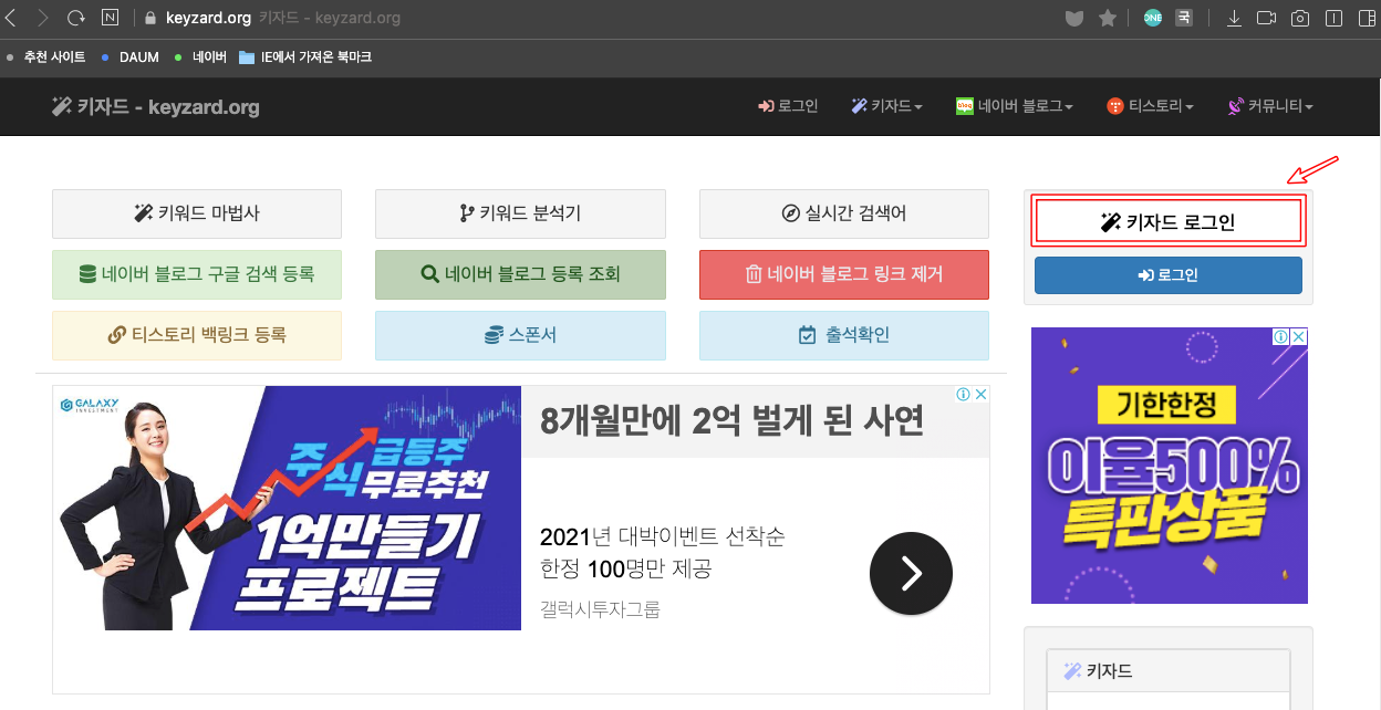 그럼 키자드 사이트로 들어가서 티스토리 블로그의 백링크를 등록해 보겠습니다.