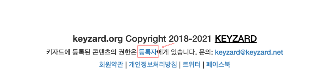 키자드 사이트 하단에서 '등록자'를 클릭하면 키자드 등록자의 ID 목록이 나옵니다.